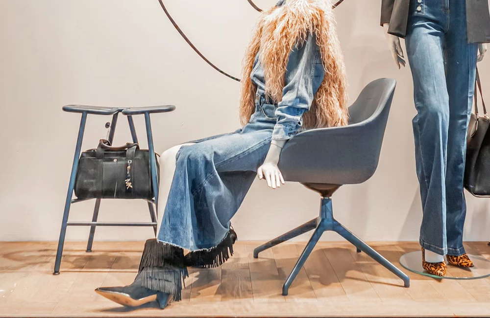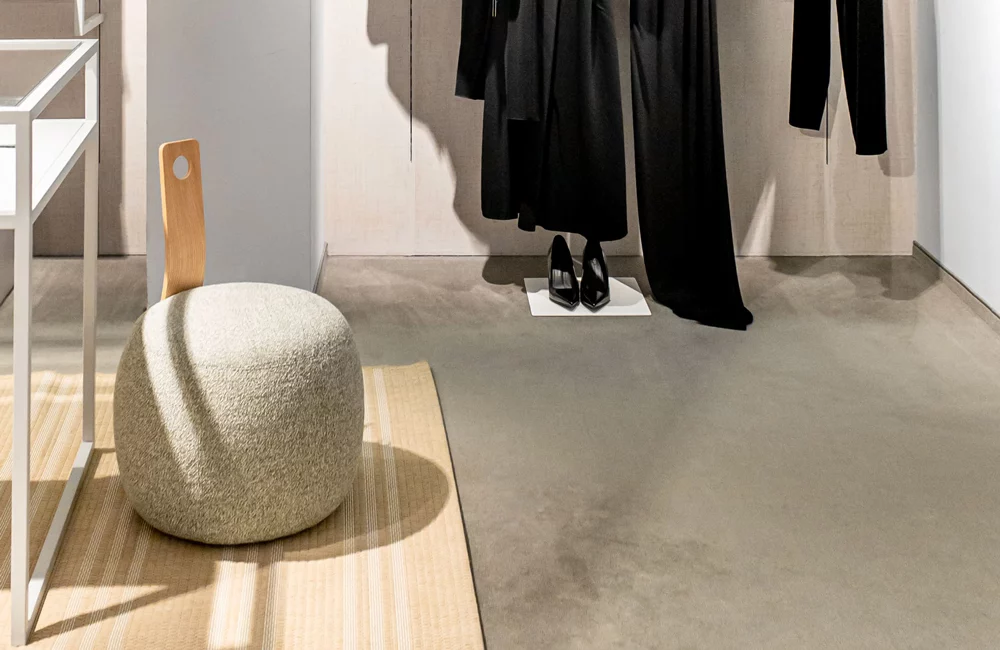 Le linee sinuose della poltrona lounge Queen, la bellezza scultorea degli sgabelli Lunettes e le finiture ricercate di tutti gli arredi selezionati dialogano perfettamente con le creazioni dei migliori fashion brand presenti nello storico negozio di abbigliamento.